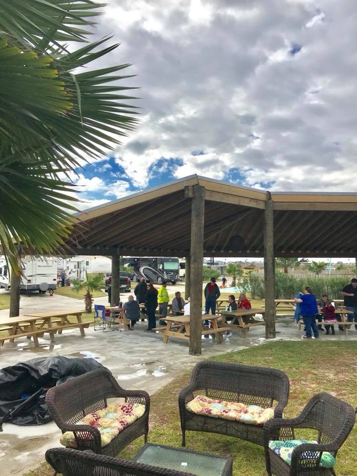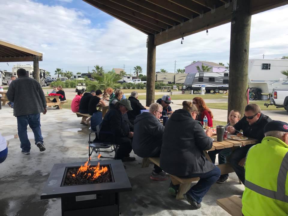 With its neatly arranged picnic tables, palm-lined backdrop, and inviting setup, the outdoor grill area makes every photo look naturally vibrant and full of life. Whether it’s sizzling barbecue shots, candid group photos, or a table filled with grilled favorites, this spot perfectly captures the laid-back charm and togetherness that define a Jamaica Beach RV Resort getaway.